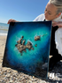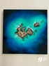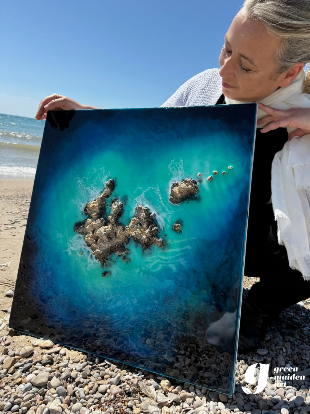 Obra original creada por Eva Jurado en madera de Okume, con resina epoxi cristal, arenas naturales y pastas escultóricas.