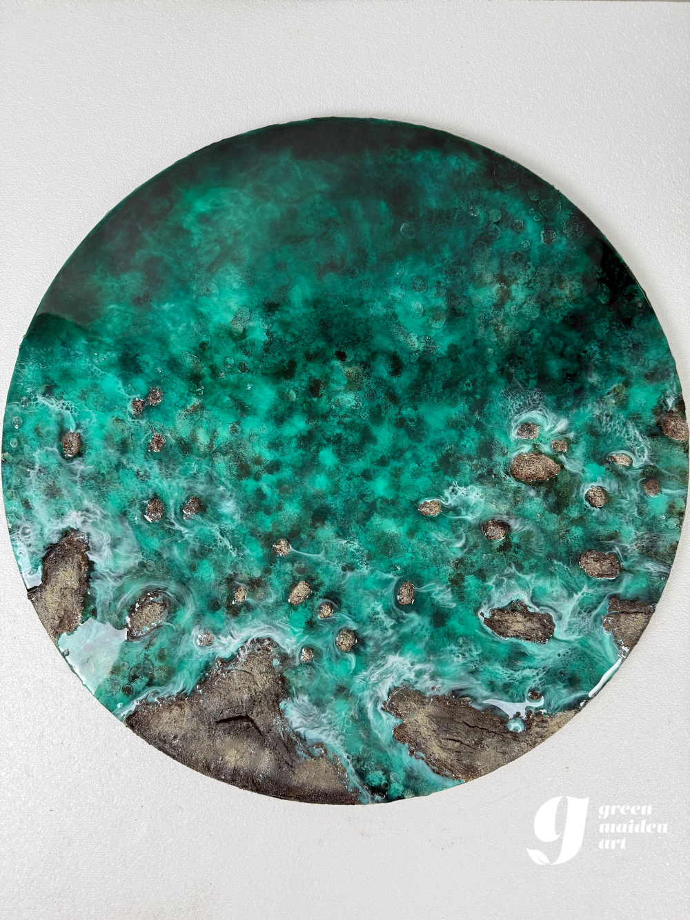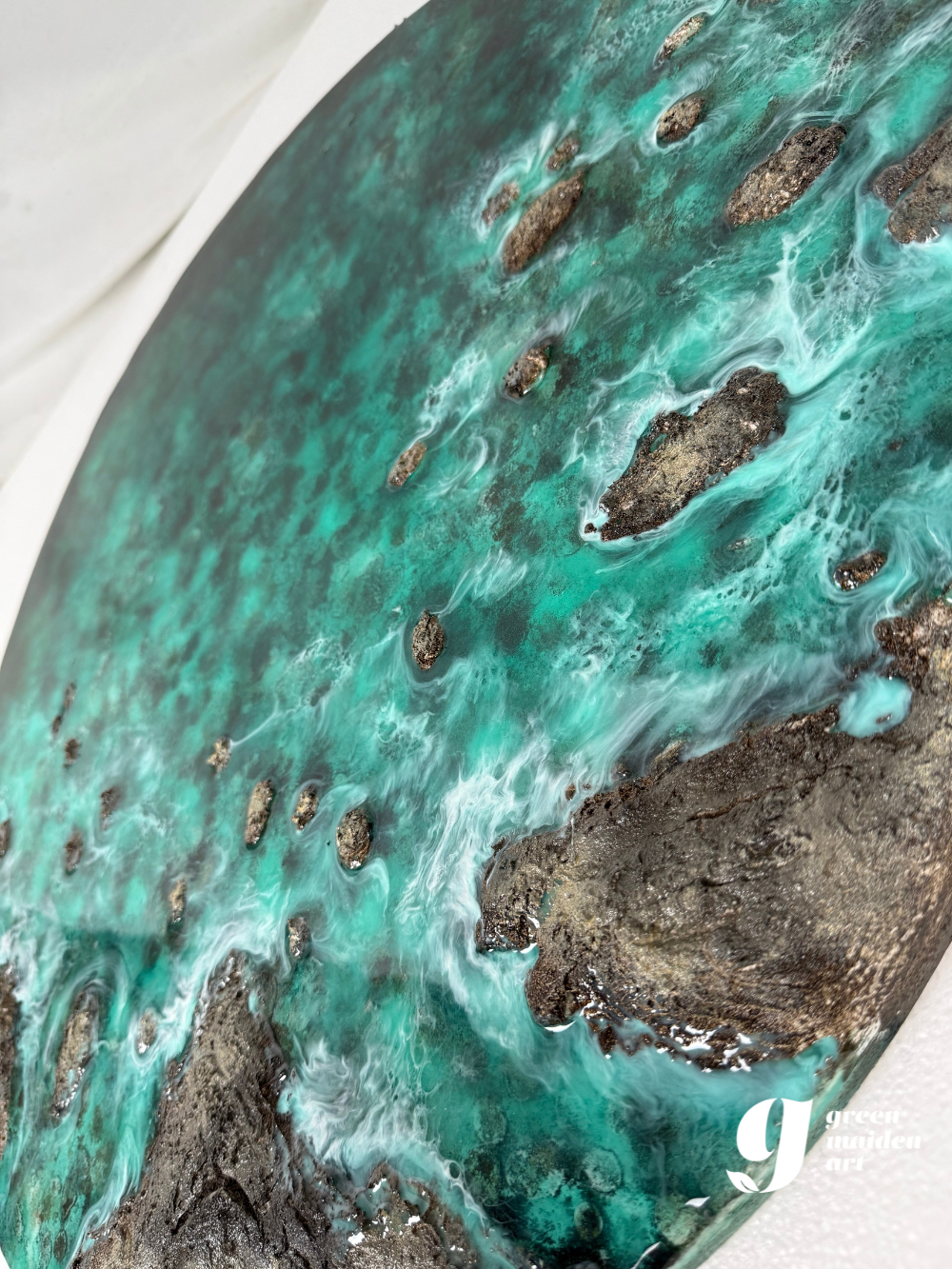 Obra original creada por Eva Jurado en madera de Okume, con resina epoxi cristal, arenas naturales y pastas escultóricas.