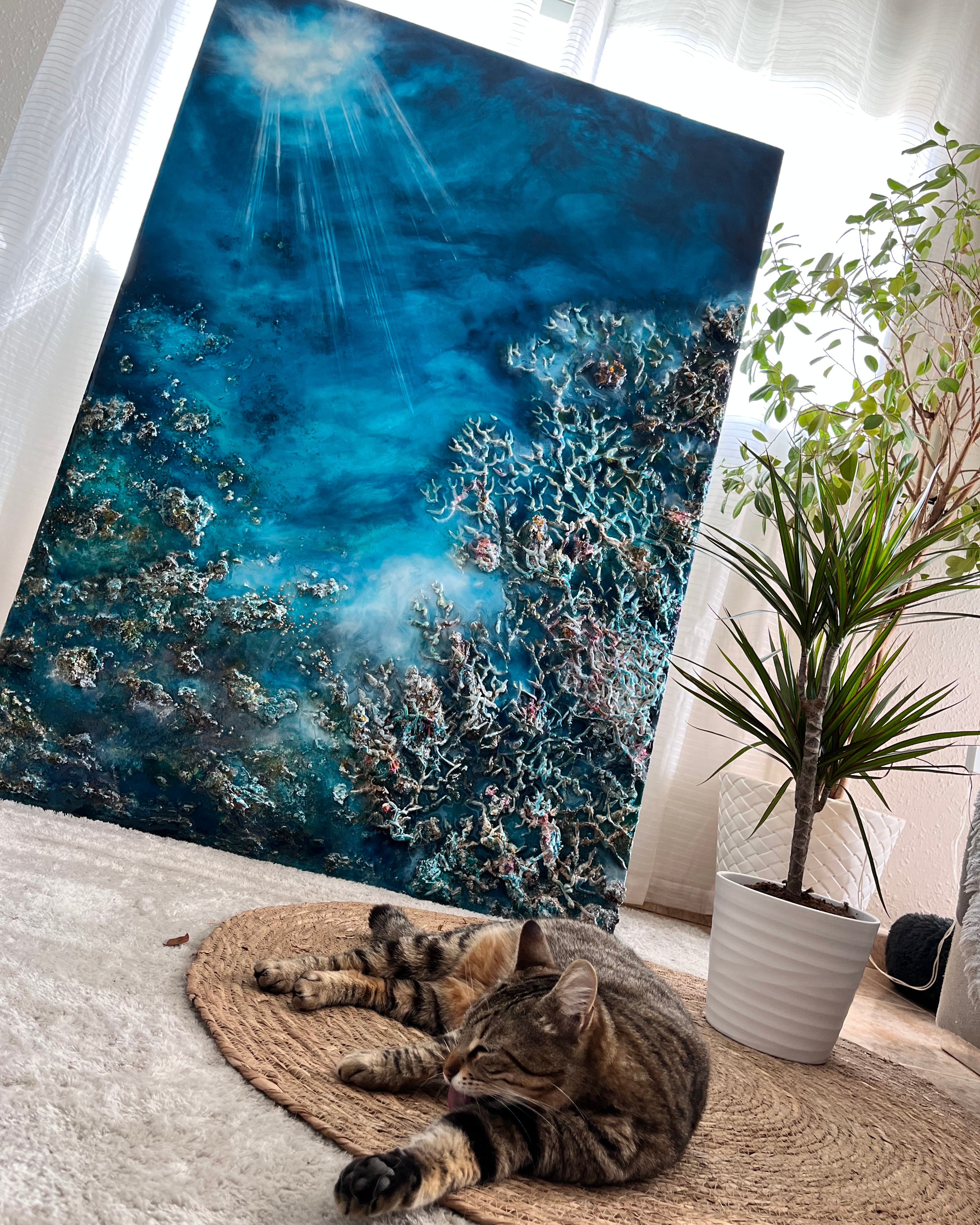 Así nació la técnica para crear en resina un mundo submarino en el que de repente podía expresarme libremente y dejar volar formas y colores, dónde podía jugar con la luz y la oscuridad de una forma vibrante y serena. Estas creaciones para mi significaron un paso muy importante en la comprensión y valorización de mi misma. Aportaron a mi vida ese mismo rayito de luz que se refleja en las creaciones. Durante mucho tiempo no he sabido como transmitirlo. Hoy se que ya estoy preparada para compartirlo, pero no como una mera técnica, si no como un proceso que integra la escucha atenta de nuestro mundo interior...