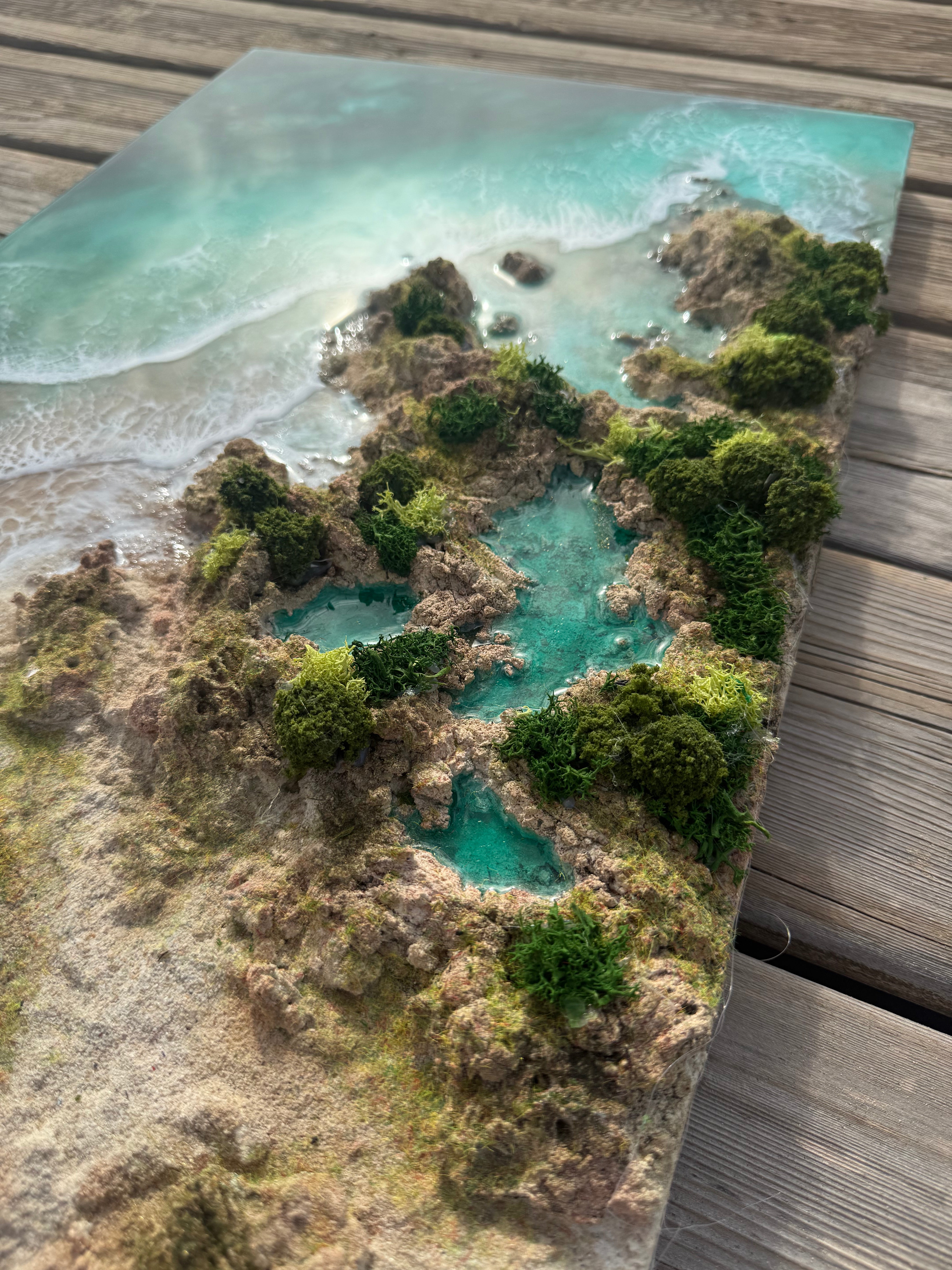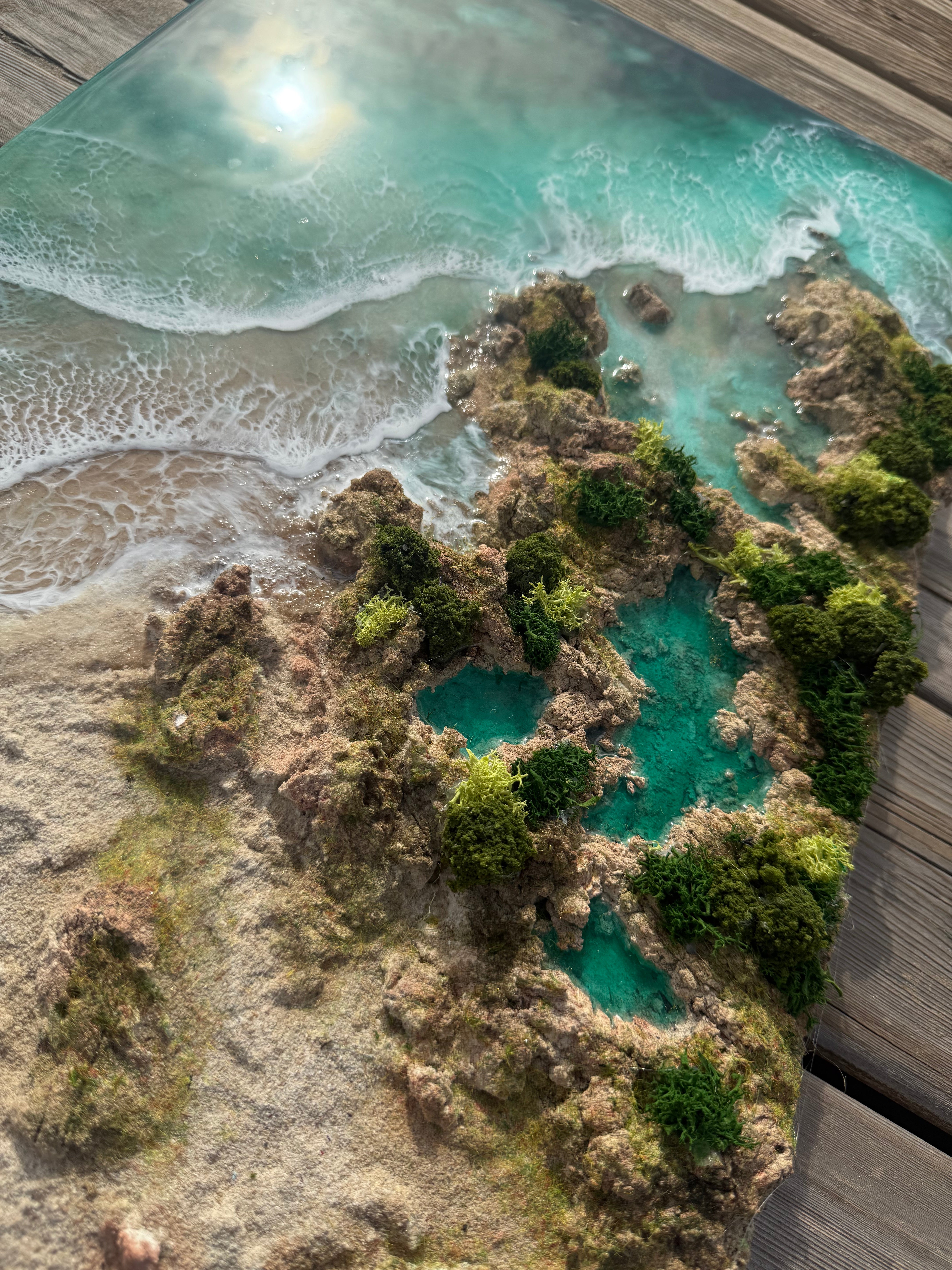 *Este taller es de especialización y está indicado para ampliar recursos a artistas que ya tengan experiencia en las creaciones de Ocean Resin Art 3D o texturas, o que hayan completado los cursos de Acantilados, Islas, Horizontes, Auroras Boreales o Charcos Canarios. Por este motivo este curso es exclusivo de Integración de Vegetación en una obra ya acabada.