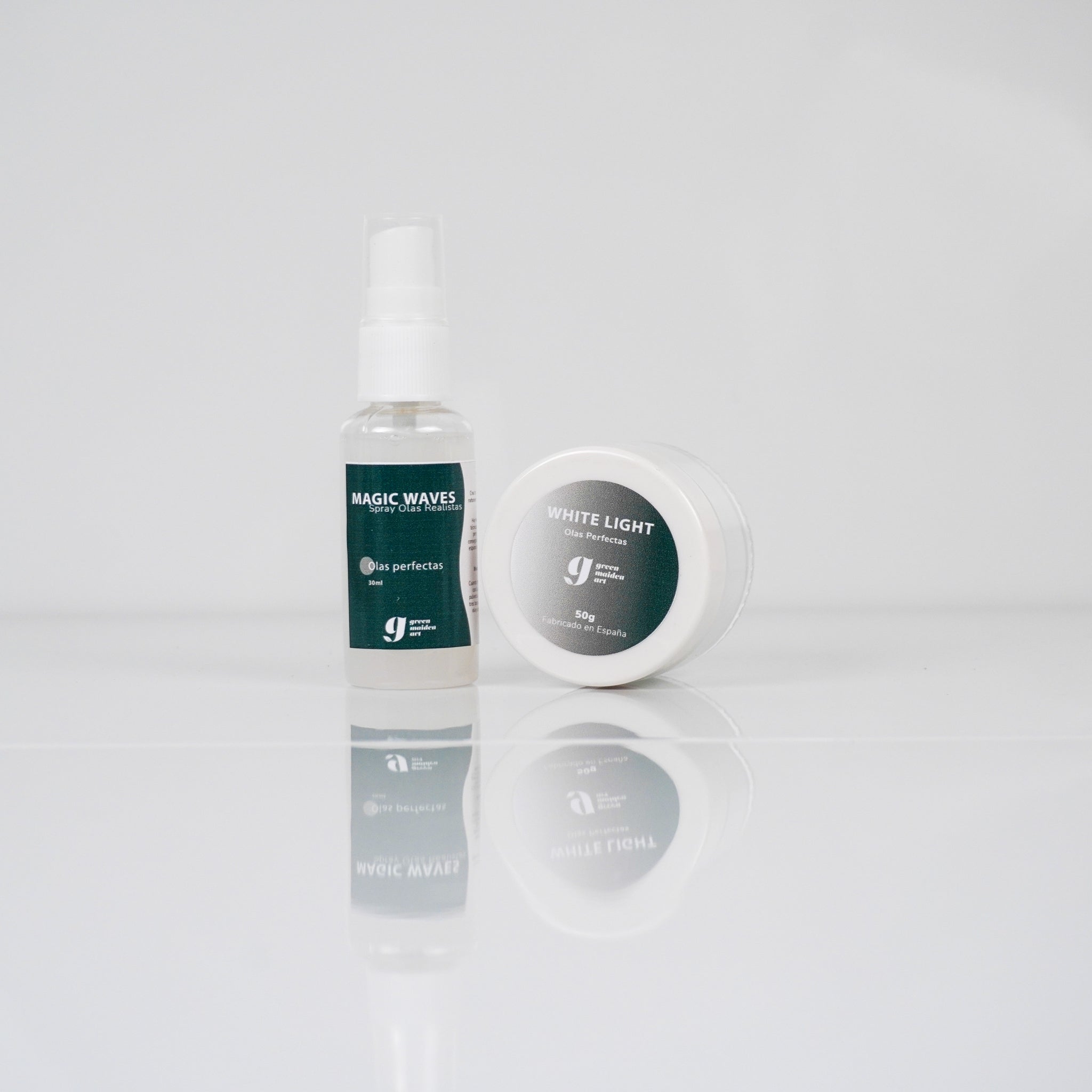 Incluye White Light, un pigmento blanco ultradenso que aporta máxima opacidad y Magic Waves, el spray que abre celdas y genera espuma natural al aplicarlo sobre las olas ya levantadas.
