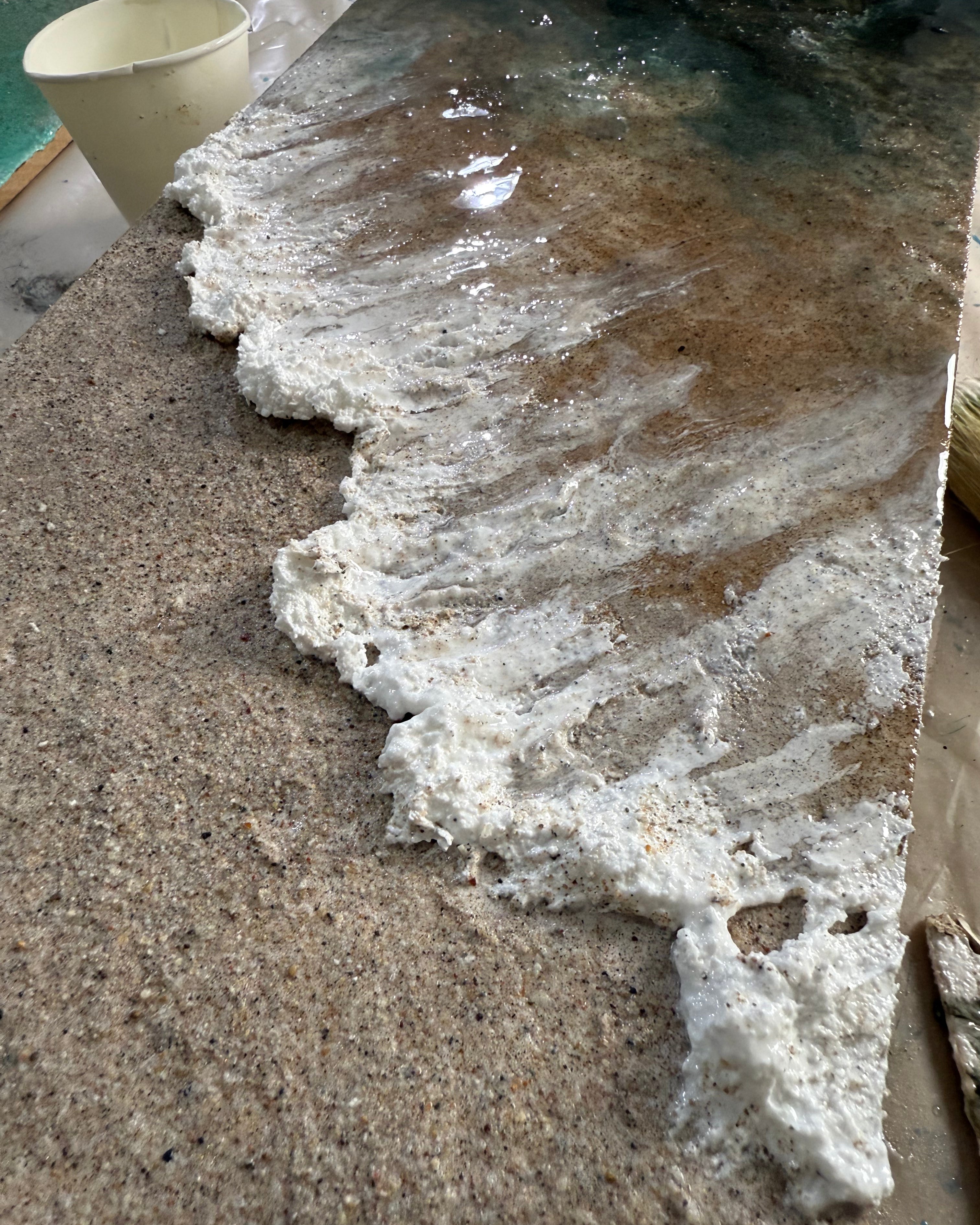 Crea playas con olas espumosas y volumen real en resina.